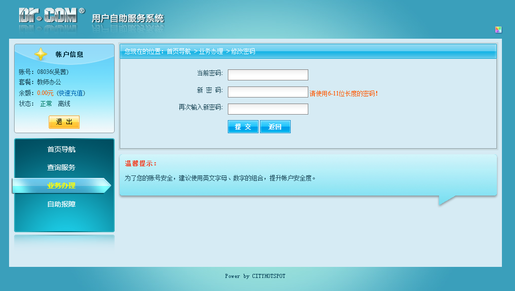 已有上网账户的用户若需要修改上网密码,请按以下步骤进行操作。