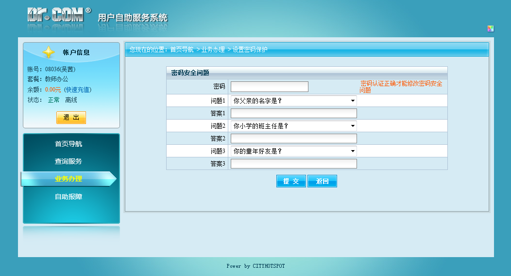 每个用户必须进行设置密码保护的操作,以便于当您忘记密码的时候,可以通过密码保护问题修改您的密码。