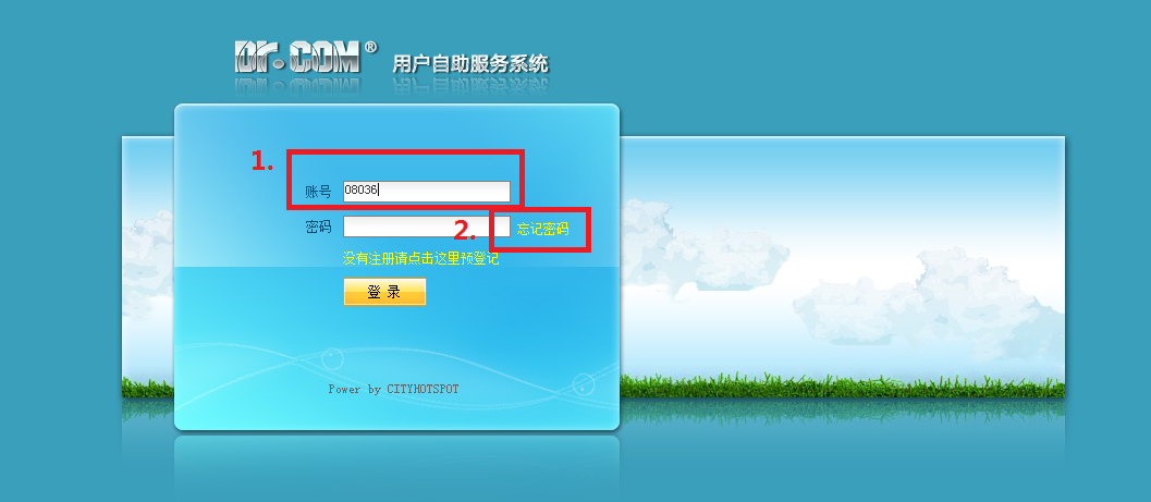 2. 输入您的上网账号,点击忘记密码,步骤如图1所示。